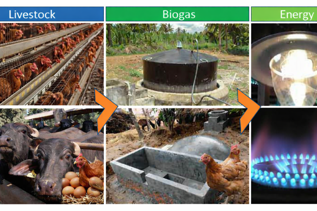 Renewable energy production that transforms livestock and farm waste into clean biogas energy and organic fertilizer, reducing reliance on fossil fuels and minimizing pollution.